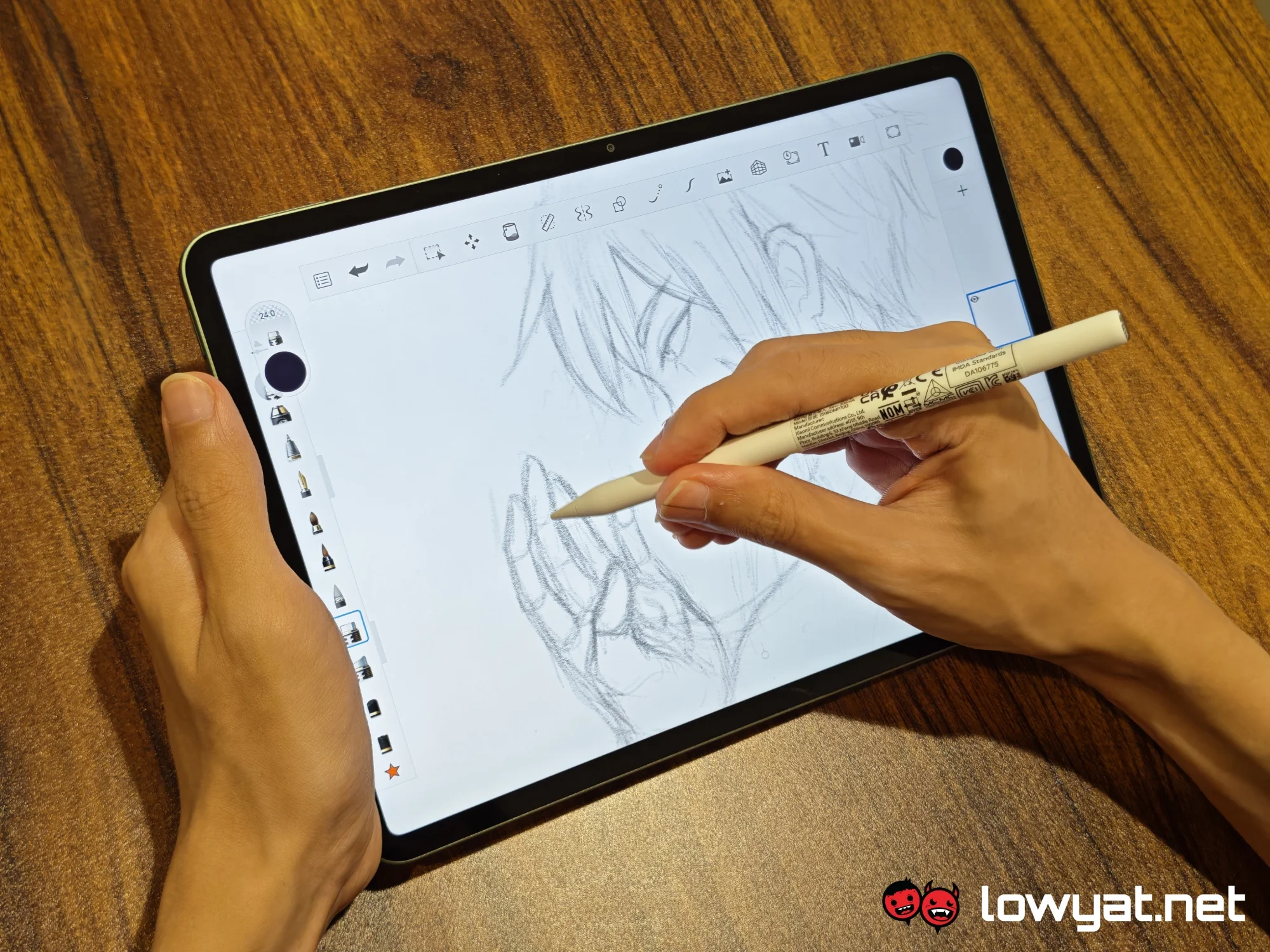 As for drawing, I do think the Focus Pen Pro is a must to get the most out of the tablet. The stylus is comfortable to hold, with a clean and sleek design that ditches physical buttons in favour of pressure-sensitive zones. While I’m not particularly fond of the gesture controls, I do appreciate the button-less design. There’s no risk of accidental presses when using it, and it feels more natural in your hand. It is a bit on the heavier side, since it has to accommodate the battery.