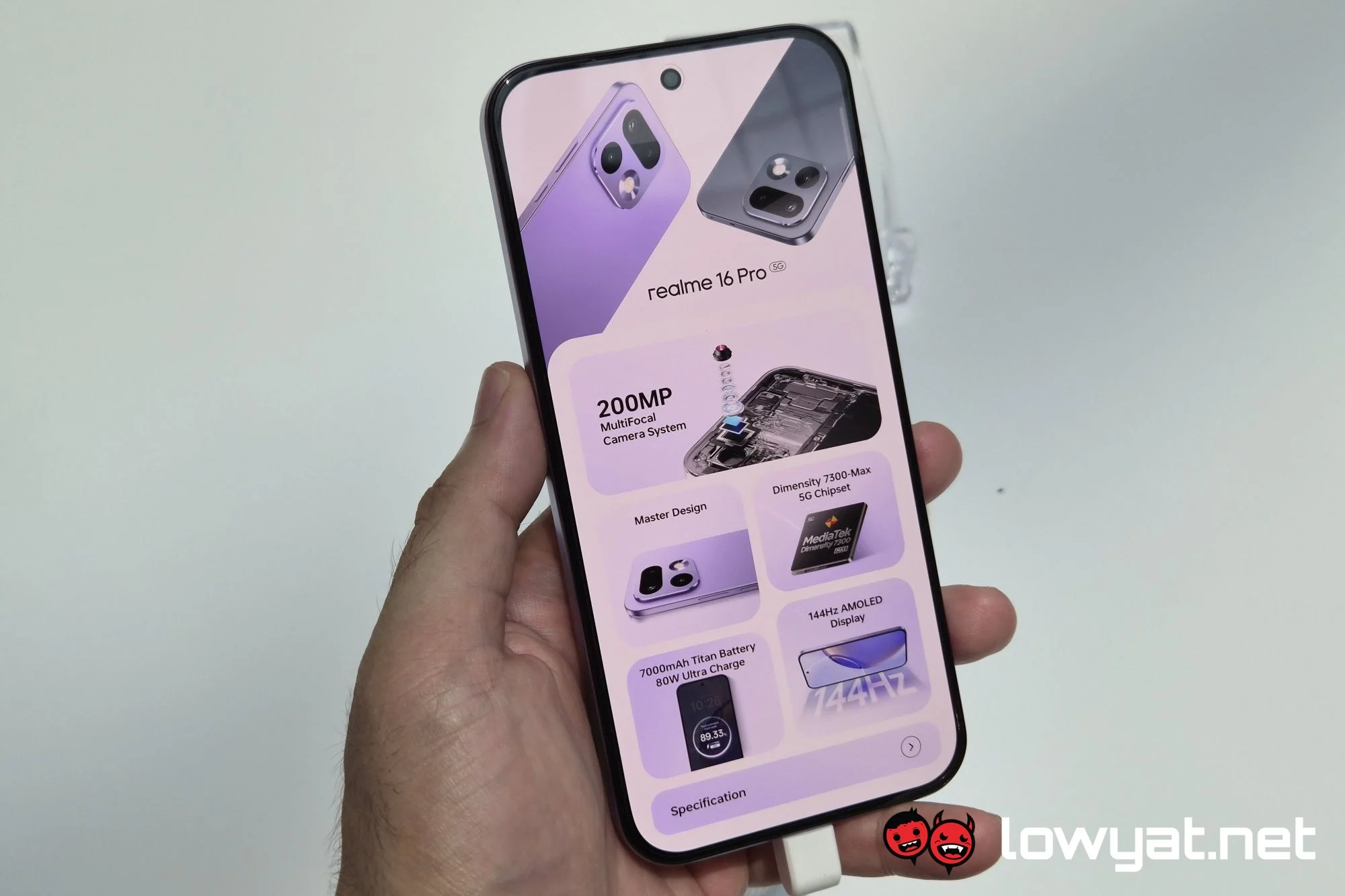 Going in order, the realme 16 Pro features a 6.78-inch Full HD+ 144 Hz AMOLED display, with support for 240 Hz sampling rate. Inside, the phone packs a MediaTek Dimensity 7300 Max 5G chipset, 12GB of RAM, ans a 7,000 mAh battery which supports up to 80W charging.
