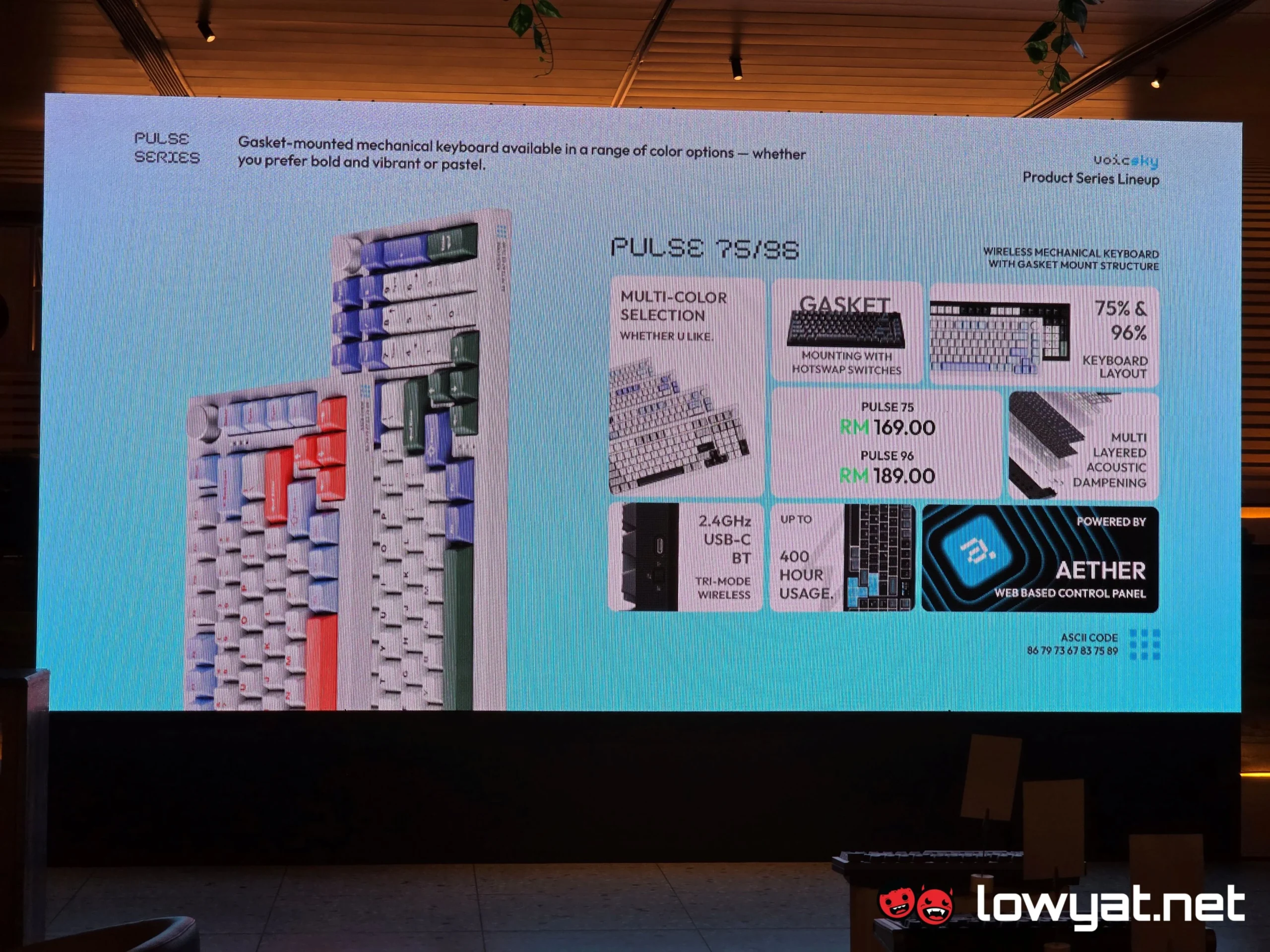 Last but not least, the VoicSky Pulse 75 and 96 are what Sun Cycle calls the entry level models. Starting at RM169 for the 75% and RM189 for the 96%, the main appeal of this line up is that it features wide range of keycap colour options. Beyond that, it’s got the same Gasket keyswitches, same multi-layered acoustic dampening, same 400 hour battery life if used via Bluetooth, as well as the same number of connectivity options.