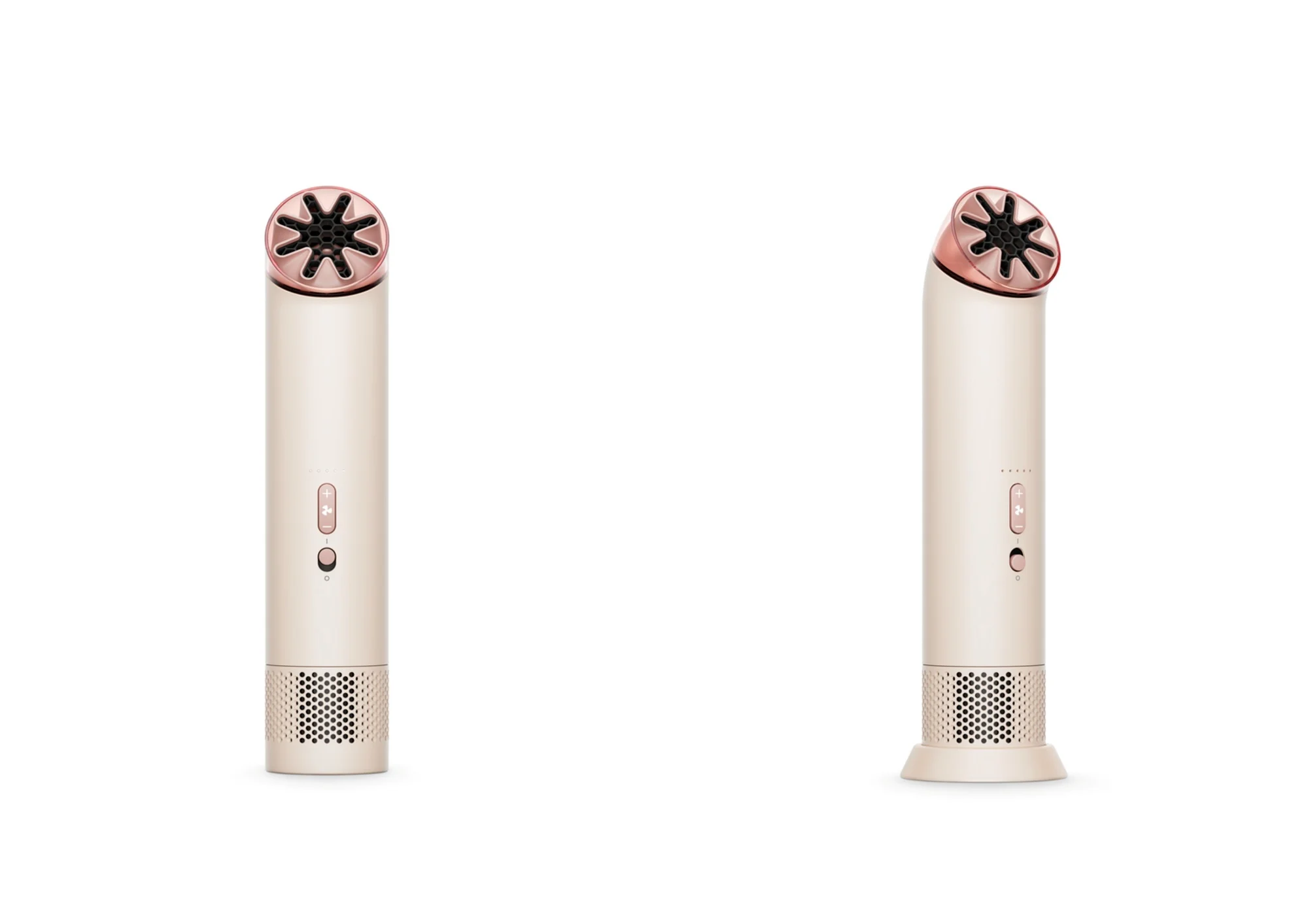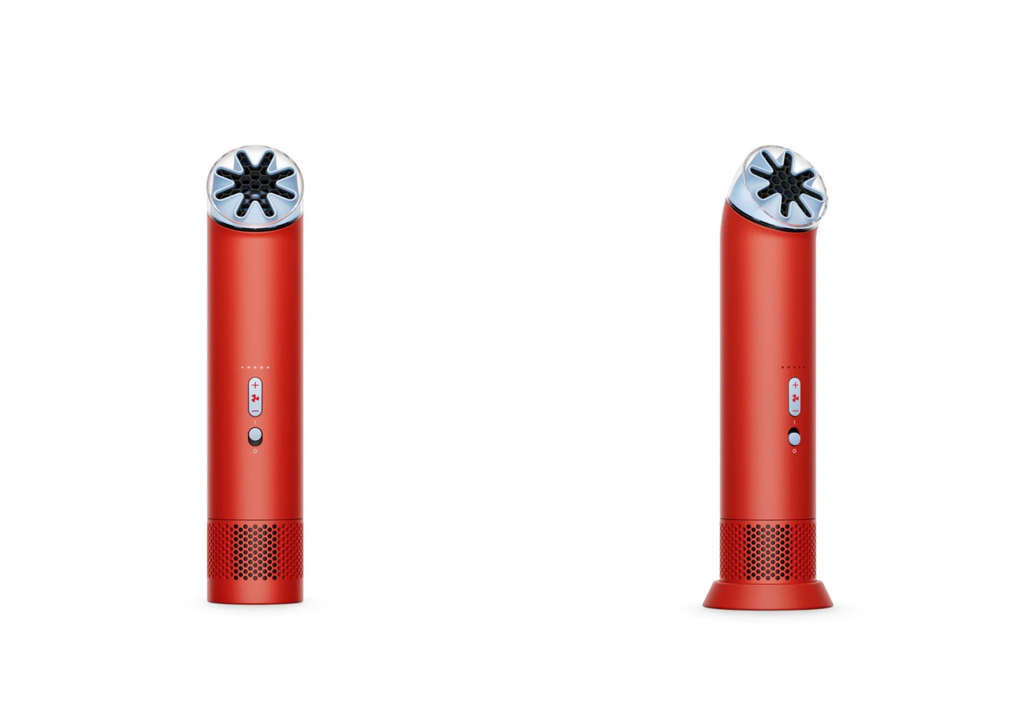 The fan’s components are all packed into a cylindrical body with a 38mm diameter, which is the same measurement as the PencilVac. The top of the device sports a nozzle, which can be rotated to direct air either upwards or at an angle. Furthermore, the device weighs 212g for easy handling. That said, it can also stand on its own.