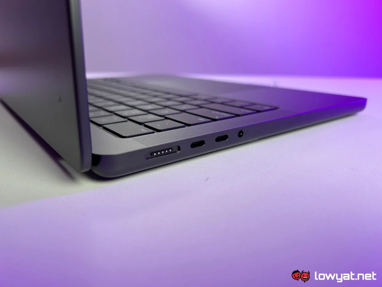 Port selection is also more generous. In addition to three USB-C ports, the MacBook Pro includes a MagSafe connector, a 3.5mm headphone jack, an SD card reader, and an HDMI port. The inclusion of the latter two is especially useful for creators and those working with external displays or media files.