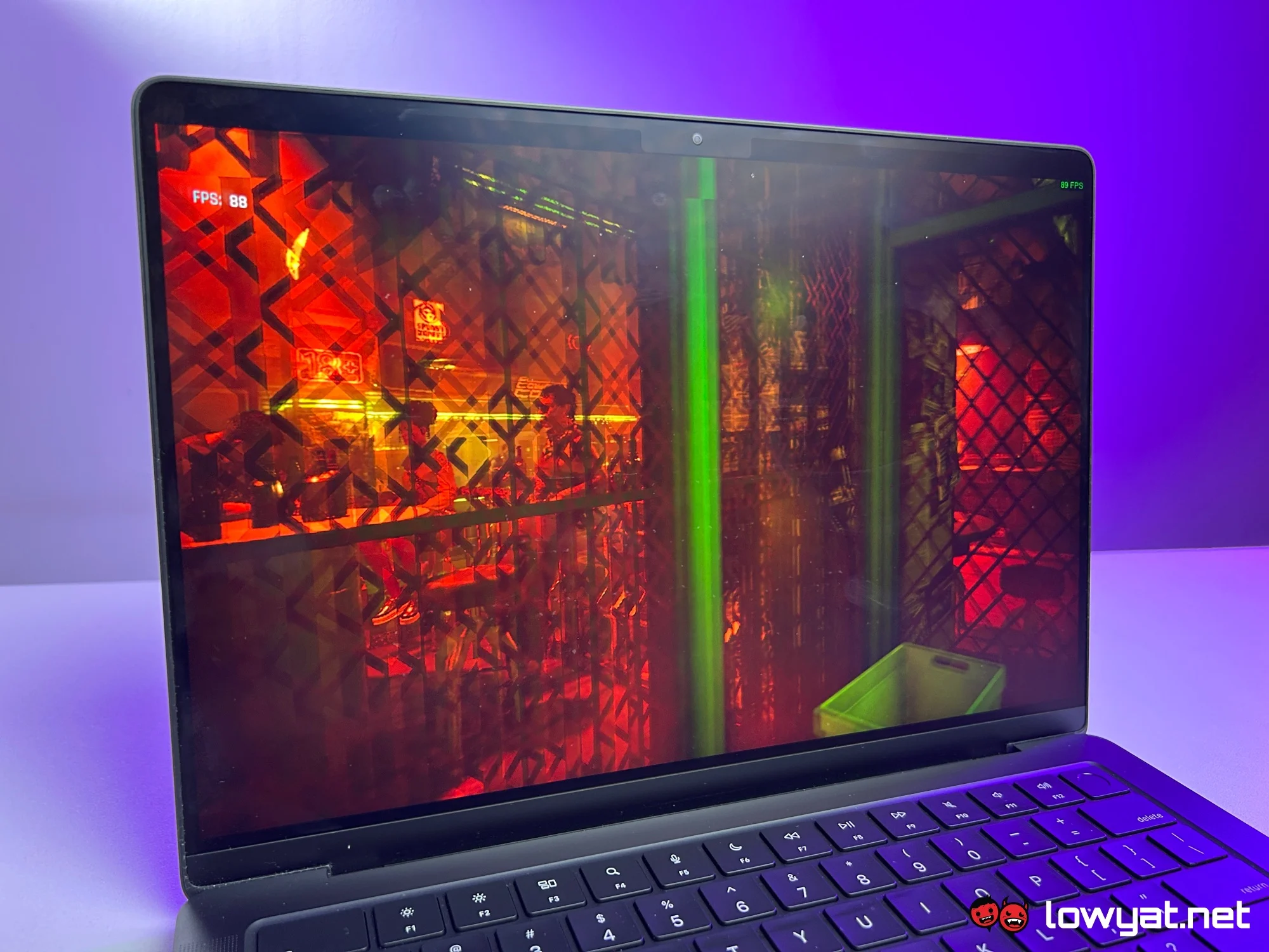 Part of this performance advantage comes from the Pro’s active cooling system. Unlike the fanless MacBook Air, the Pro uses a single fan paired with a heat pipe, allowing it to sustain higher performance levels under load. During testing, temperatures remained well controlled, and the fan stayed relatively quiet even when running demanding benchmarks and games.