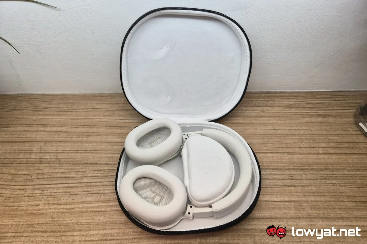 On the surface, you get all of the other basic stuff like faux leather on the ear cups as well as under the headband. You also get the usual telescoping slider, and though you don’t see the notches of each step, you do still feel it. Maybe you can argue that the presence of a button and a joystick is a bit unconventional. And while we’re here, the button is primarily for switching ANC modes or the preset equaliser, while the joystick is for everything else.