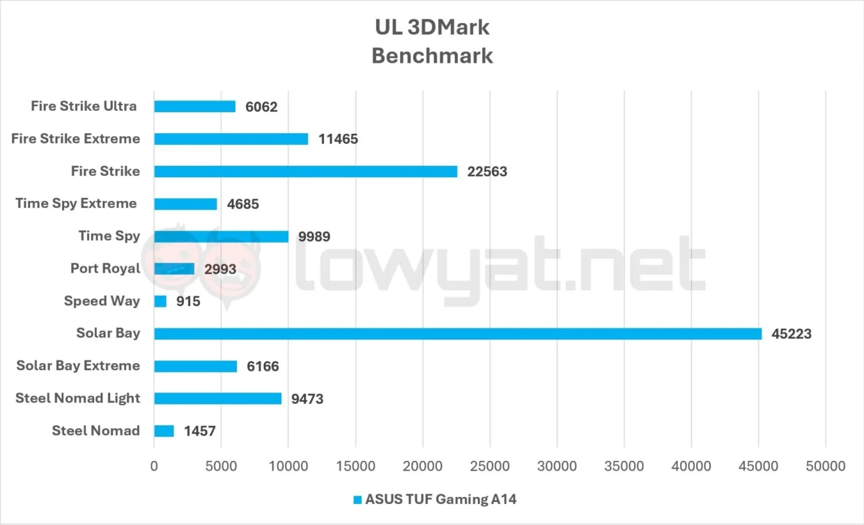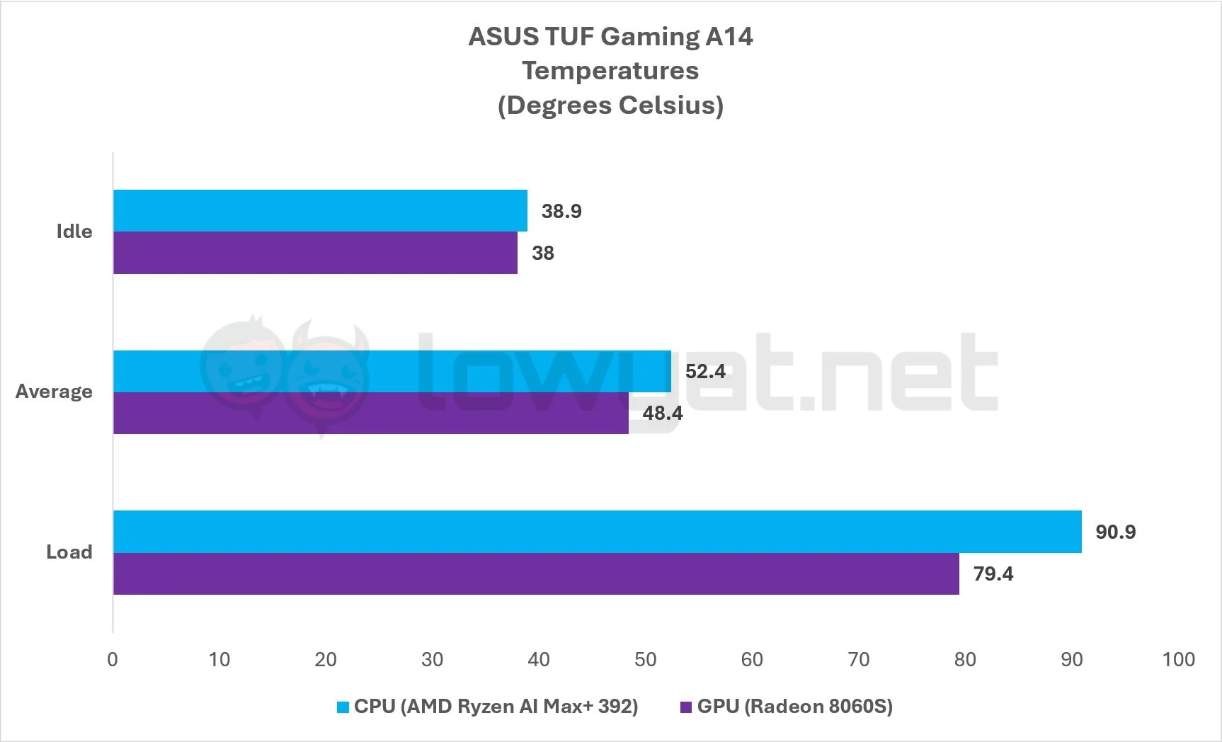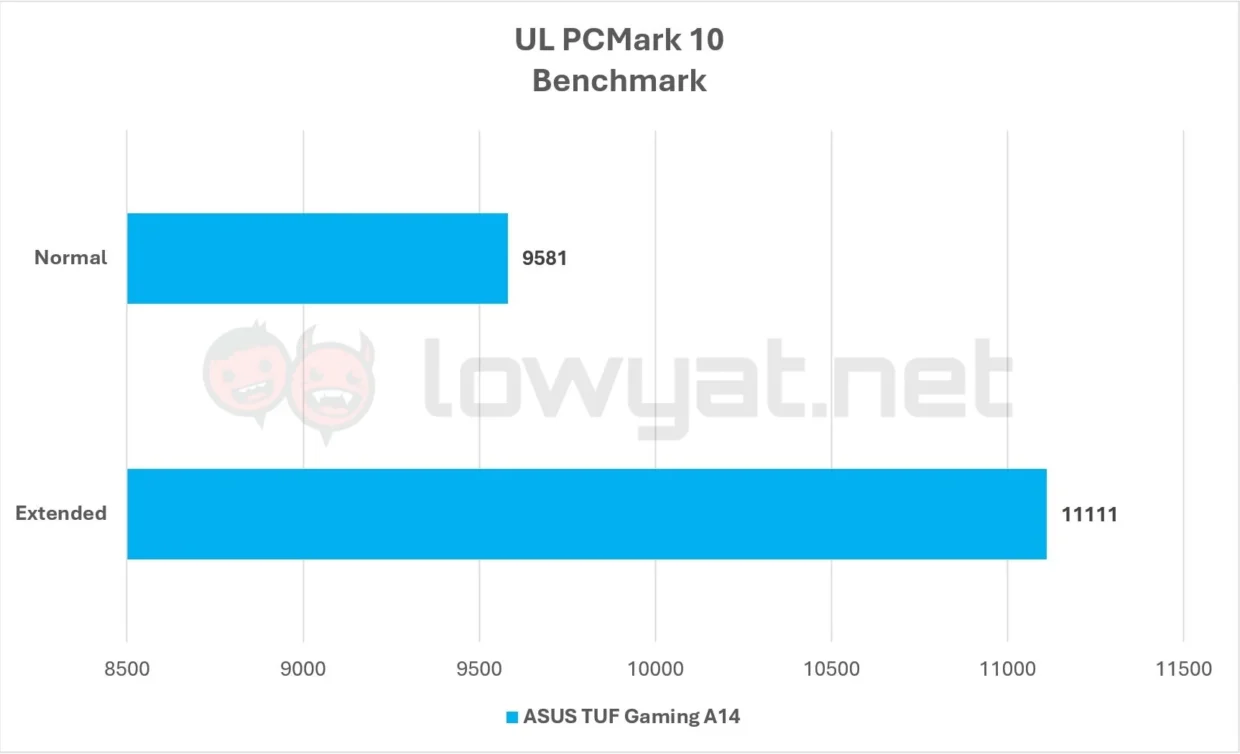 Battery life is something of an oddity. Allow me to explain: most times, the battery test I conduct with laptops gives a consistent average. With the TUF A14, that average feels like a fulcrum swing.
