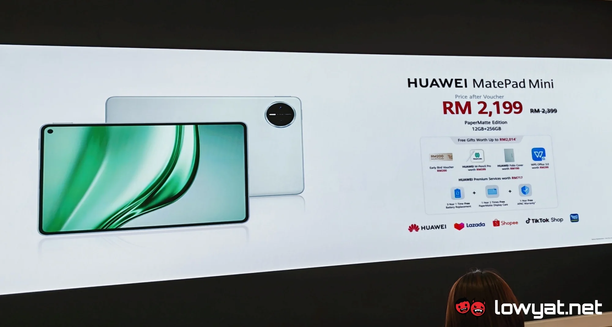 Huawei MatePad Mini priceAs part of the launch, Huawei is offering free gifts worth RM2,014. These include an early bird voucher worth RM200, so the final price of the tablet is RM2,199. Among the other goodies are the M-Pencil Pro, folio cover, PC-level WPS 3.0, a one-time free battery replacement within three years, two instances of PaperMatte display care within a year, and a one-year APAC warranty.