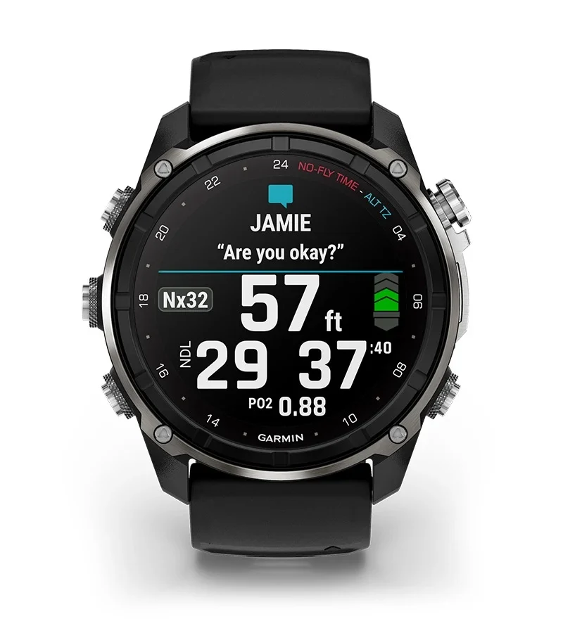 One of the key features of the Descent Mk3i is its SubWave sonar support, which lets divers send preset messages underwater to others using compatible devices at distances of up to 30 metres. Pair it with the Descent T2 transceiver, and the watch can also monitor tank pressure and depth for up to eight divers within a 10-metre range.
