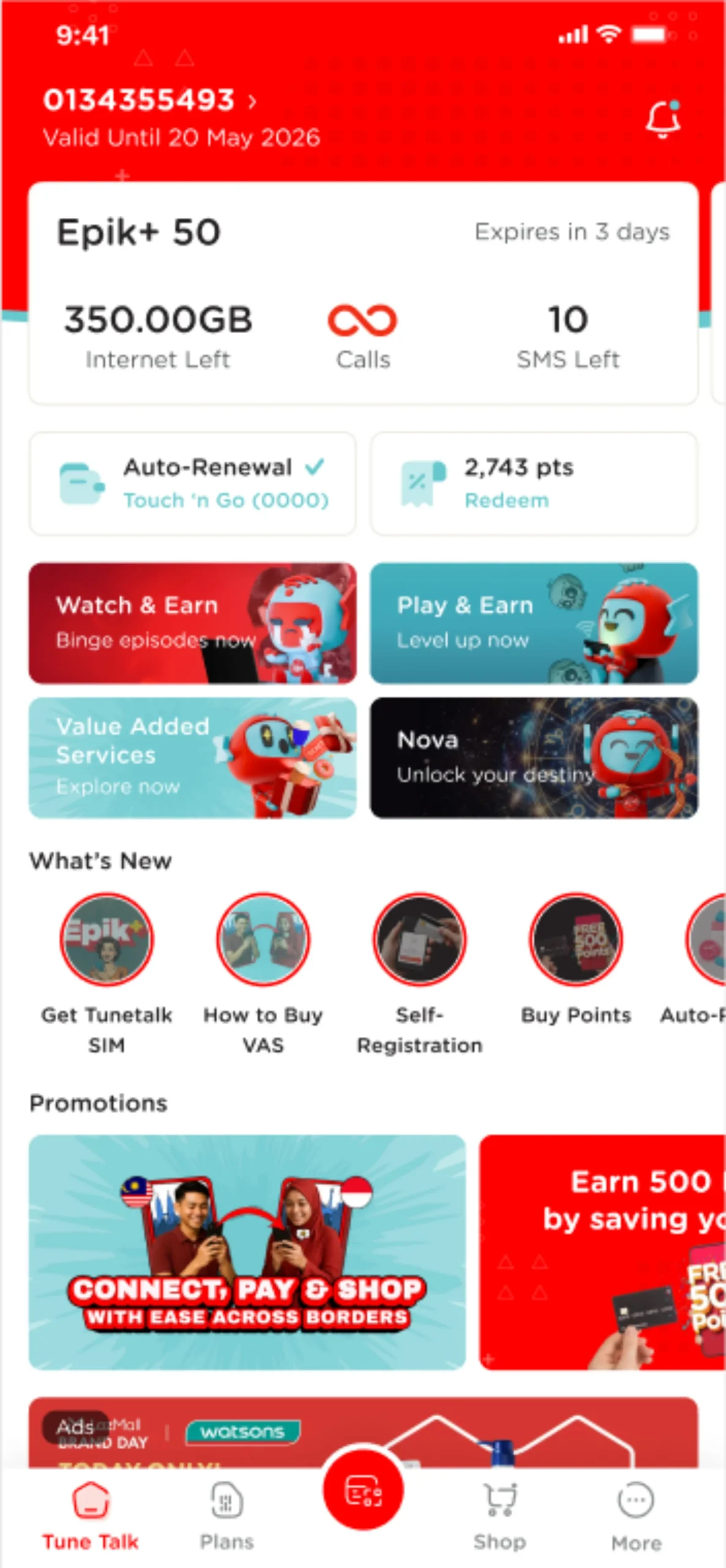 Meanwhile, Tune Talk manages the end-to-end experience, as well as the payment environment. Speaking of which, the platform supports TNG eWallet, credit card, debit card, FPX, as well as other digital wallets. Aside from that, subscribers have the option to use Tune Talk Points. Customers can also combine the points with another payment method.